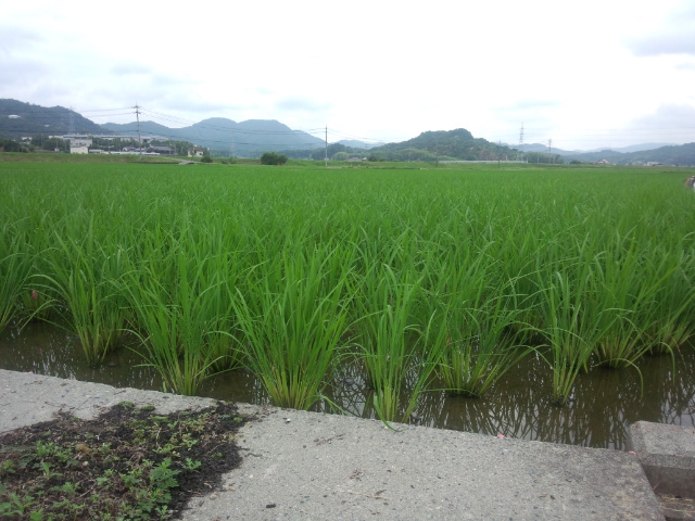 無農薬栽培の稲、7月上旬の様子です。草は、1本もありません。農薬、化学肥料は、一切使わずに、堆肥と油粕ペレットを混ぜて田んぼに入れております。 稲も、化学肥料で無理やり、成長させられるより有機肥料のみで、ゆっくりと成長する方が、喜んでいるような気がいたします。